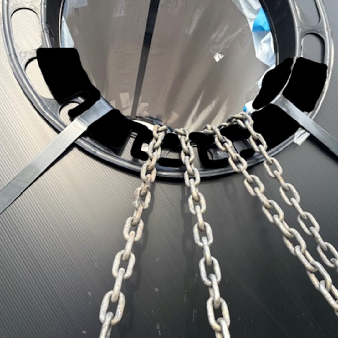 Dog tooth’s coil protectors are designed to fit along either side of an aluminum or steel material coil. Made from durable high density polyethylene (HDPE), our plastic coil edge protectors offer a secure, immovable buffer between the chains and the material coil, protecting both from potential contact damage. They still secure the chains in place, and prevent the coil from shifting around during transportation without causing damage to either one. Even better, our coil protector products are reusable across multiple trips before their integrity deteriorates.